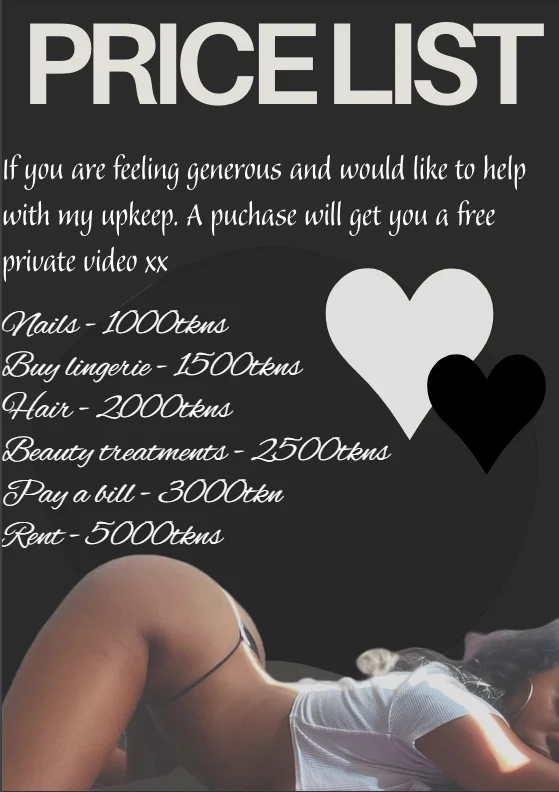 Price list for the extra generous who want to help with monthly expenses. Any purchase off this list gets you free content and private show x